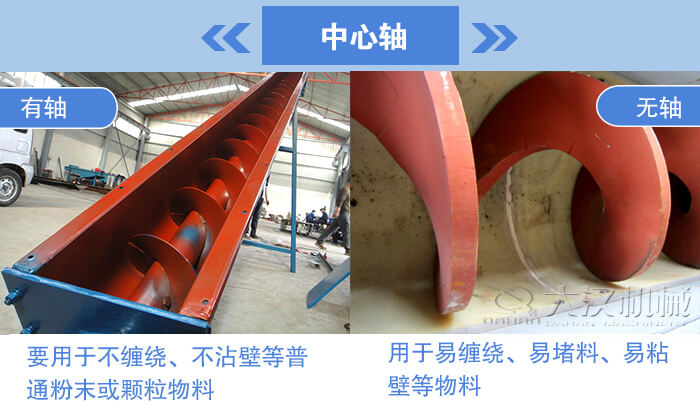 水平型螺旋送料機中心軸:有軸、無軸