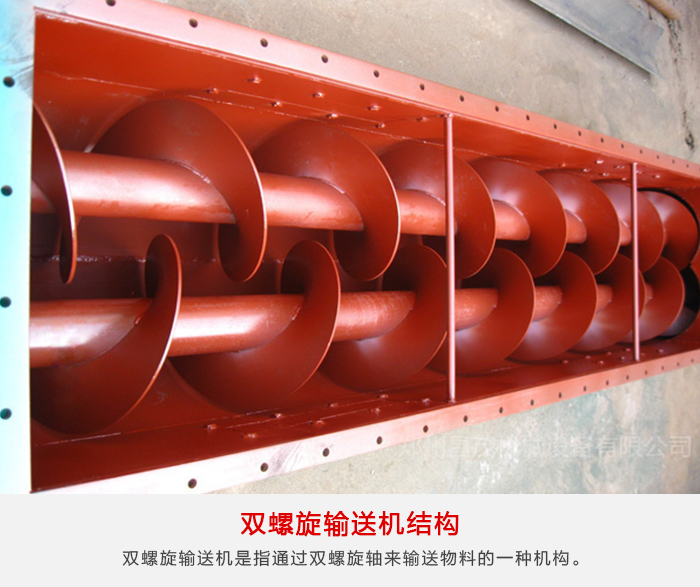 雙螺旋輸送機,其是輸送機中的一種,而且,從某一方面來講的話,其是指通過雙螺旋軸來輸送物料的一種機構。因此,其的工作原理,可以認為是,擋板提升輸送機,通過旋轉(zhuǎn)的螺旋葉片,來完成物料輸送這項工作的。