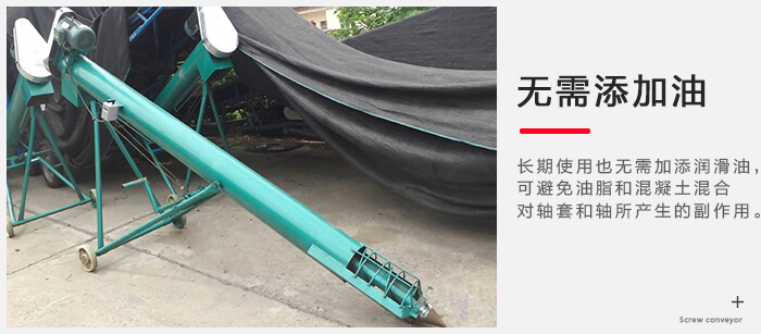 由于移動式螺旋輸送機(jī)采用了新穎的中間軸承材料,,既能減摩,耐磨又能自潤滑,即使長期使用也毋需加添潤滑油,可避免油脂和混凝土混合對軸套和軸所產(chǎn)生的副作用。