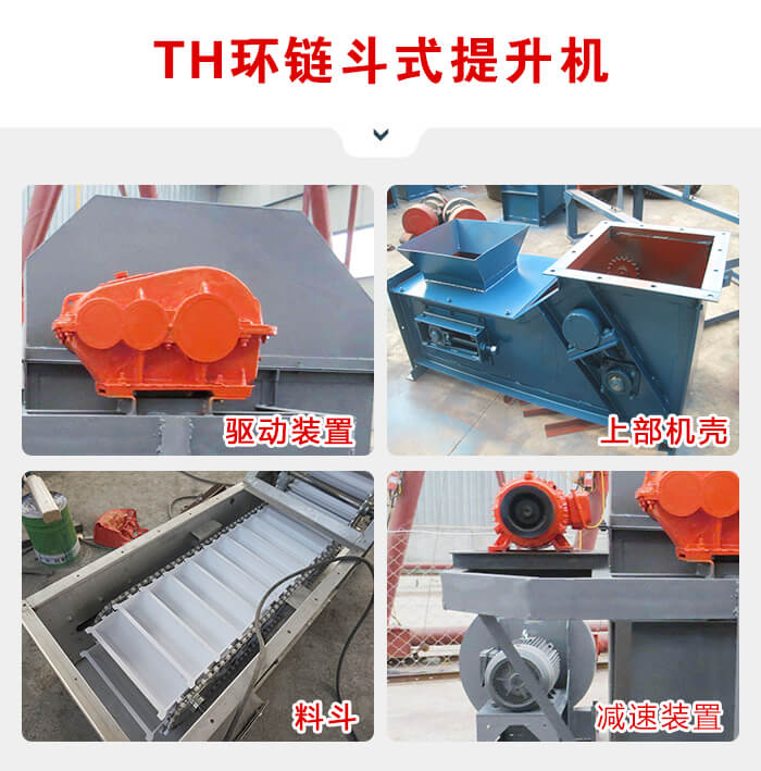 粉TH環鏈斗式提升機型號有TH160、TH250 、 TH315、TH400 、TH500等。同時大漢機械支持產品特殊定做,根據您的要求為您定制出合適的設備!