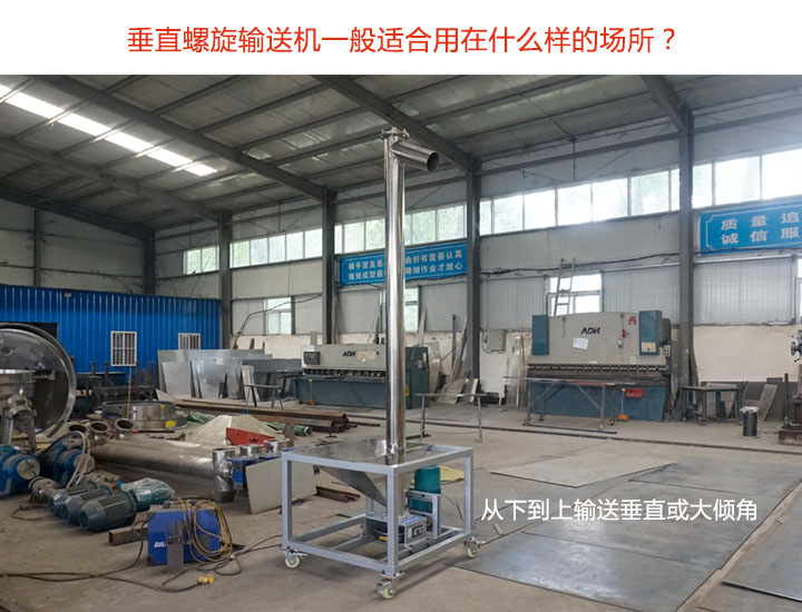垂直螺旋輸送機(jī)采用從下到上輸送垂直或大傾角粉末、顆粒及非粘性干燥物料,那么垂直螺旋輸送機(jī)適合用在哪些場所呢?