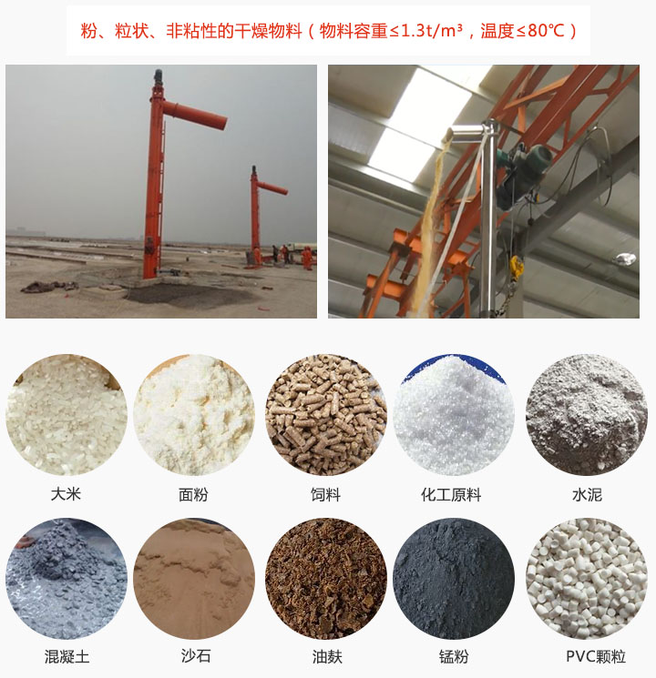 垂直螺旋輸送機(jī)可輸送大米,面粉,飼料、化工原料、水泥、混凝土等粉、粒狀、非粘性的干燥物料(物料容重≤1.3t/m³,溫度≤80℃);在輸送同時(shí)也可對(duì)物料進(jìn)行干燥和冷卻等功能。