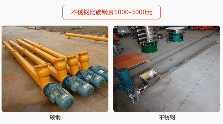 水泥螺旋輸送機(jī)有碳鋼和不銹鋼材質(zhì),碳鋼材質(zhì)硬度強(qiáng),耐磨性強(qiáng),不銹鋼價(jià)格偏貴,其具有良好耐熱性,耐腐蝕性,不生銹,價(jià)格偏差為3000元。