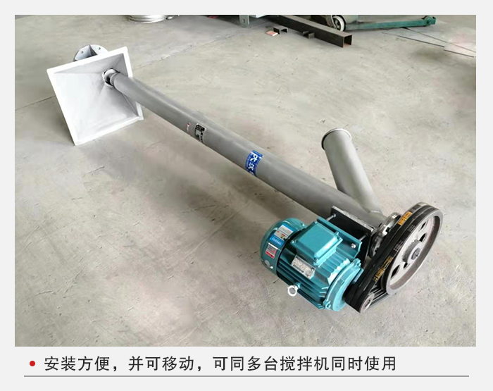 1、安裝方便,并可移動,如多臺攪拌機使用同一種料,只需一臺上料機可同時供多臺拌料機上料,免除人工加料的麻煩,使加料工作變的安全,更省時、更省力。