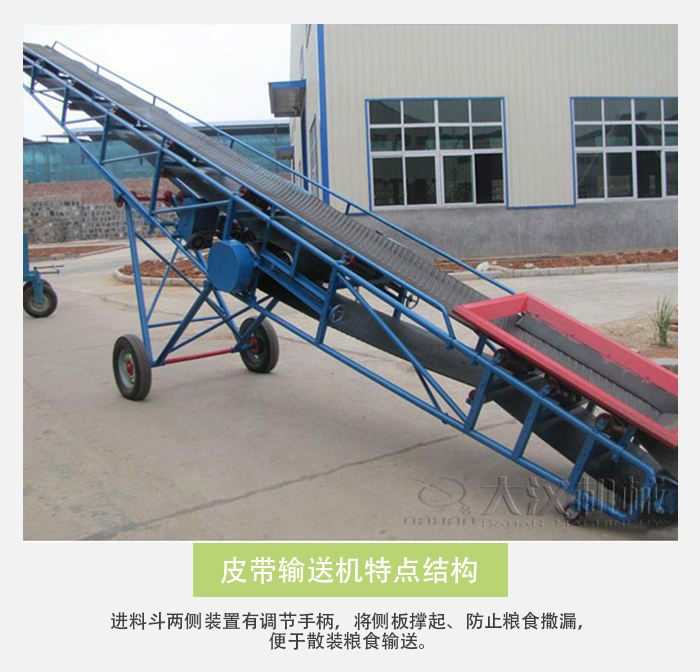 主要用于裝卸地點經常變更動的場所,如:港口、碼頭、車站、煤場、倉庫、建筑工地、沙石料場、農場等以及散糧、包糧的輸送、堆垛、裝卸車等作業,用來短途運輸及裝卸散料或單件重量100公斤以下的成件物品。