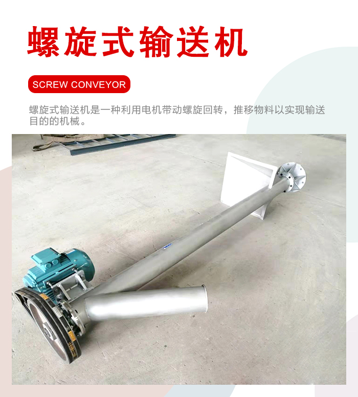 螺旋式輸送機是一種利用電機帶動螺旋回轉,推移物料以實現輸送目的的機械。